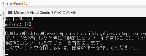 1>D:\User\Desktop\ConsoleApplication1\ConsoleApplication1\ConsoleApplication1.cpp(6,28): error C3861: 'myFunc': 識別子が見つかりませんでした