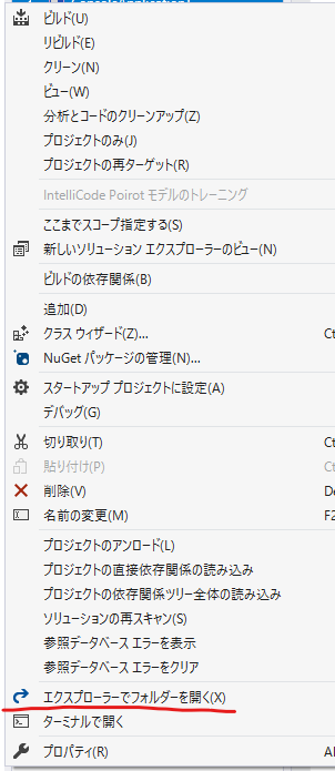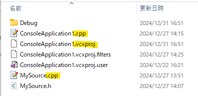 .cpp / .vcxproj 含む、プロジェクトのフォルダが開いたことを確認します
