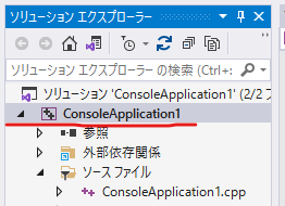 ① [ソリューション エクスプローラー] より "ConsoleApplication1.cpp" を右クリック