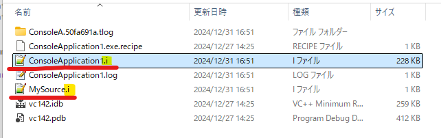 これで、エラーが発生するリンク処理が行われないため、エラー主力なく .i ファイルを出力することができます。