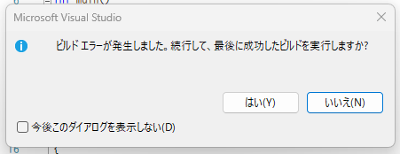 ========== ビルド: 0 正常終了、1 失敗、0 更新不要、0 スキップ ==========