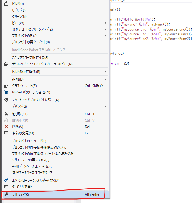 [ソリューション エクスプローラー] よりプロジェクト項目 ("ConsoleApplication1") を右クリック