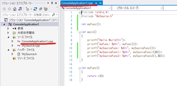 Visual Studio を開き、"ConsoleApplication1.cpp" を開いた状態にしてください