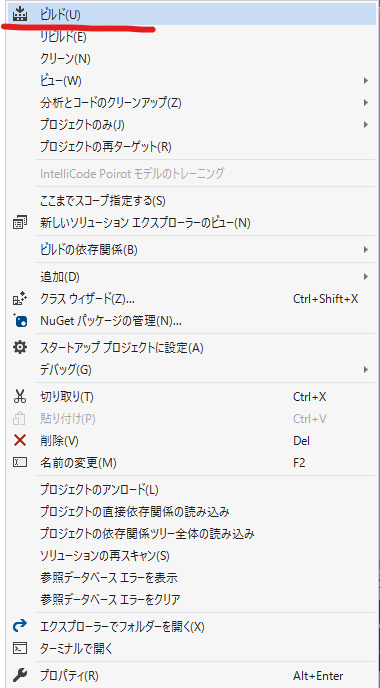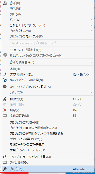[ソリューション エクスプローラー] より、一番上のソリューション項目を右クリック