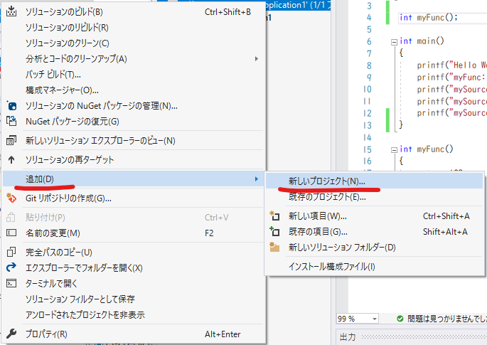 これでソリューションにプロジェクトが追加されました。